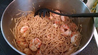 Sunday: Shrimp Scampi and asparagus. This one of the recipes where you can substitute whole wheat pasta for regular. And that is exactly what I did. Once you get the shrimp cooked just toss it with 8 oz. of cooked spaghetti.